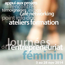 Journées de l'Entrepreneuriat Féminin 2014 mots clés2014 a déroulé du 3 au 28 novembre la 4ème édition de cet évènement qui propose chaque année, sur un mois, de nombreuses occasions d’enrichissement professionnel aux femmes  portant un projet de création ou développement d’entreprise, mais aussi aux scolaires envisageant la piste de l’entrepreneuriat.